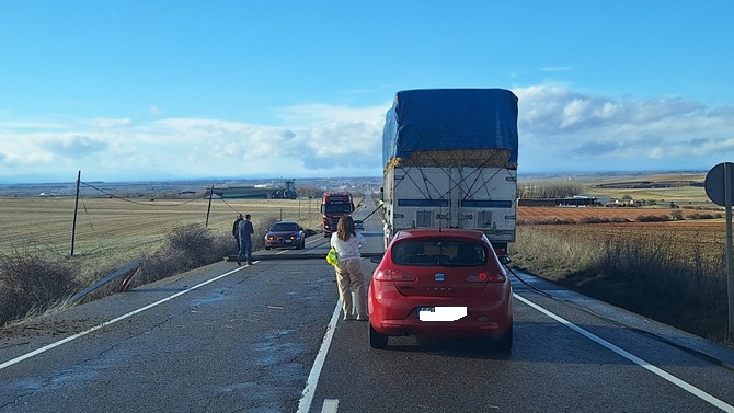 La carretera de Valencia de Don Juan a Mayorga está cortada debido a la caída de un tendido de telecomunicaciones en la carretera. Un camión de paja ha golpeado parte de un tendido y ha acabado arrancándolo. Parte de los cables y un poste cortan por completo esta vía, por lo que es imposible la circulación por la misma.