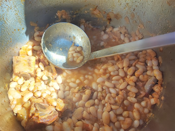 Todo esto, junto con el buen hacer de los agricultores, que saben unir la tradición del cultivo de esta leguminosa con las nuevas tecnologías aplicadas a la agricultura. Da como resultado la cosecha de un alimento de alta calidad. Y todo ello aderezado con 60 kilos de chorizo, panceta, costilla adobada, oreja, puerros, pimiento rojo y verde, ajos y cebollas.