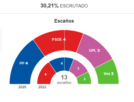 En Laguna de Negrillos el partido más votado ha sido el Partido Popular por 207 votos. UPL se consolida en segunda posición con 177 mientras que el PSOE logra 153. VOX obtiene 128 votos y Se Acabó La Fiesta con 7 votos.![[Img #105907]](https://leonsurdigital.com/upload/images/03_2026/1107_captura-de-pantalla-2026-03-15-223842.png)