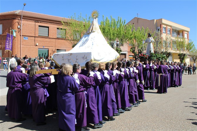 La mañana del domingo de Pascua se celebra el último acto de la programación de la Semana Santa en la localidad paramesa de Laguna de Negrillos. La solemne procesión de El Encuentro comenzó a las 11:30 horas desde la plaza de Nuestra Señora del Arrabal a su paso por las calles de la localidad al compás de las marchas más representativas del Domingo de Gloria.