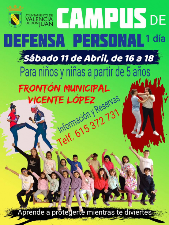 Además este sábado, 11 de abril, se desarrollará un campus de defensa persona pra niños y niñas a partir de 5 años. Será en horario de 16:00 a 18:00 horas en el frontón.