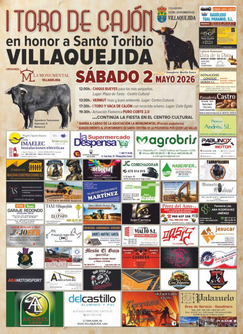 Villaquejida celebra el 27 de abril Santo Toribio, el Cristo siendo el día grande el 14 de septiembre.
