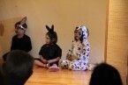 De gato, de espantapájaros o de detective... todo papel tiene su importancia y así lo demostraron estos pequeños grandes artistas en su representación desarrollada en la Casa de Cultura de Villaquejida. Al frente de los artistas su monitora Silvia Alonso Carbajo.
