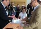 El candidato de UPL a las Cortes de Castilla y León, Luis Mariano Santos, ejerció su derecho a voto en el Colegio Electoral de Cistierna.