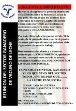 La Organización de Productores de Leche (OPL) celebraron ayer una asamblea general en la Casa de Cultura de Valencia de Don Juan. Una reunión cuyo objetivo principal fuerealizar una completa radiografía de la actual problemática del sector y en consecuencia organizar movilizaciones para mostar su descontento. Hace un año, en el mismo escenario tuvo lugar una asamblea similar pero según explicaron los organizadores la situación ha empeorado mucho en los últimos meses. La crisis del sector deja unos "precios tirados" de la leche como consecuencia de un control abusivo de la industria y el fin de las cuotas lácteas.  En estos momentos el problema es aún peor que el bajo precio de la leche, para muchos productores y cooperativas la problemática es "colocar" la leche, "hay muchos productores que están tirando la leche" aseguró el portavoz de la OPL, José María Álvarez.