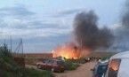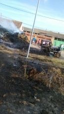 Un tractor que transportaba paja arde por una chispa del motor