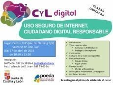 Para hoy miércoles están previstas dos charlas sobre el uso de internet y las nuevas tecnologías. Por la mañana Poeda impartirá un taller sobre uso seguro de internet (ciudadano digital responsable) que abordará diversos aspectos como virus, contraseñas, cómo proteger los smartphone, la banca electrónica, wifi o redes sociales entre otros temas. La actividad se desarrollará de 10:30 a 13:30 horas en el Centro CIAS de Valencia de Don Juan. Los asistentes recibirán un diploma que acreditará su asistencia.