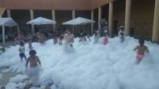 El patio del Palacio de Toral de los Guzmanes se transformó ayer en una gran piscina de espuma. Pequeños y mayores disfrutaron (y se refrescaron) en la Fiesta de la Espuma organizada por el Ayuntamiento de la localidad con el patrocinio del restaurante El Palacio.