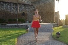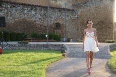 En cuanto la propuesta para eventos y fiestas los tejidos en los vestidos volvieron a ser la apuesta de Toral que apostó por vestidos vaporosos en los largos, aquí destacaron elegantes vestidos con abertura en la pierna. En los modelos cortos para fiesta modelos estructurados y con volumen. Los escotes en la espalda y las cinturas marcadas fueron la tendencia en toda la colección de la joven diseñadora que sorprendió con sus trajes de pantalon y juveniles vestidos transformados en dos piezas. Aquí Toral se decantó por estampados alegres y vivos combinados con colores claros, con las excepciones de los clásicos rojo y negro.