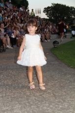 La diseñadora también presentó su colección infantil y juvenil para niñas. Modelos frescos y alegres para los momentos más informales. En su propuesta para los vestidos de las niñas destacaron los vestidos rectos con corte vintaje con abrigos y chaquetas a juego, todo en colores claros.