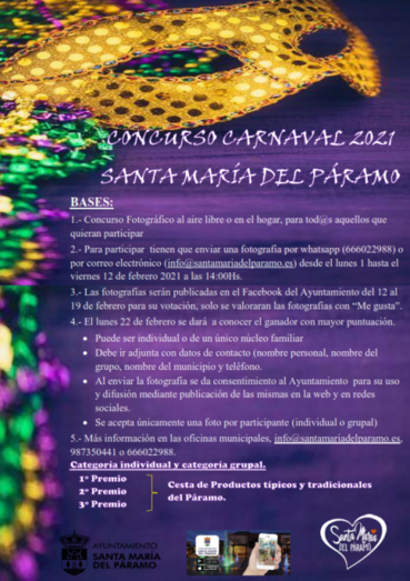 El Ayuntamiento de Santa María del Páramo suspende los Carnavales 2021. Así lo ha anunciado el concejal de Cultura, Turismo y [...] Leer más...