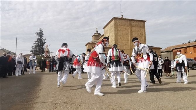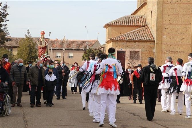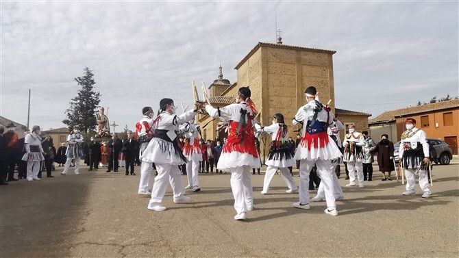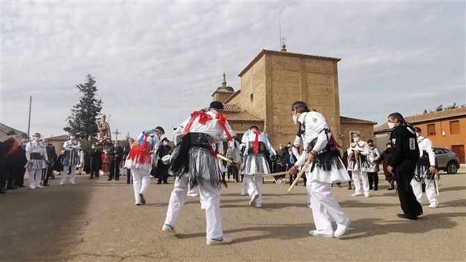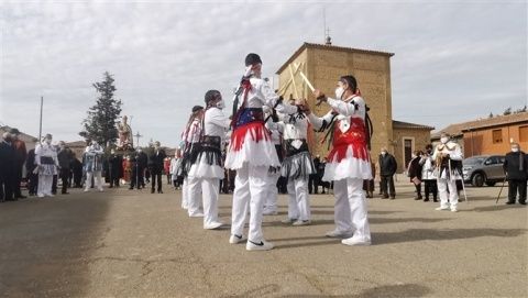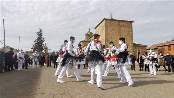 Después del parón del 2021, la danza y el paloteo regresó a Villamandos por San Blas. Para La Horca habrá que esperar.