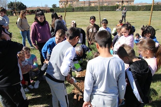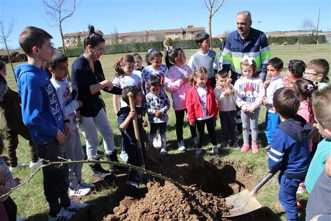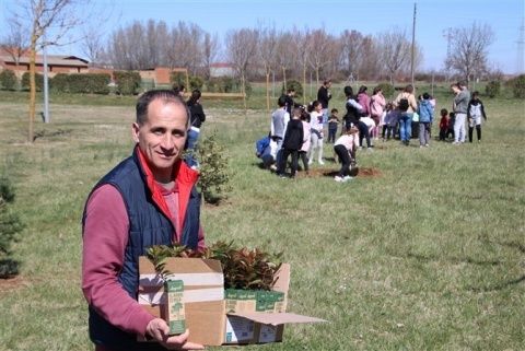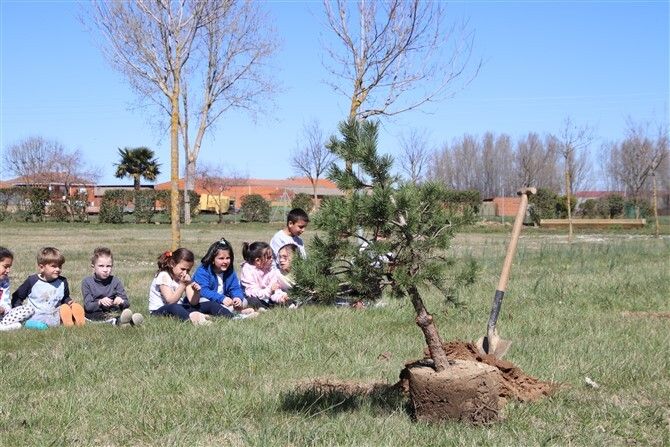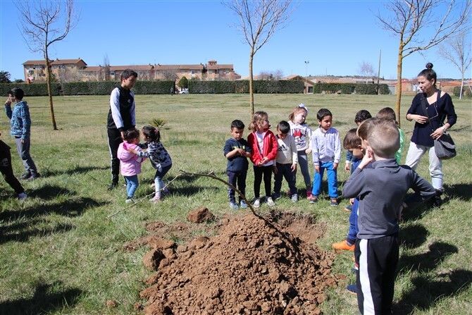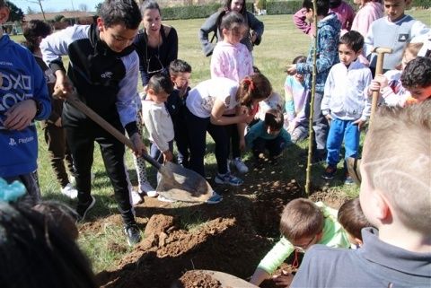 El Ayuntamiento de Villaquejida organizó una jornada medioambiental para que los niños del colegio y de la guardería de Villaquejida celebraran el Día del Árbol plantando nuevos árboles en la localidad.