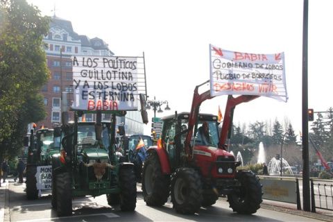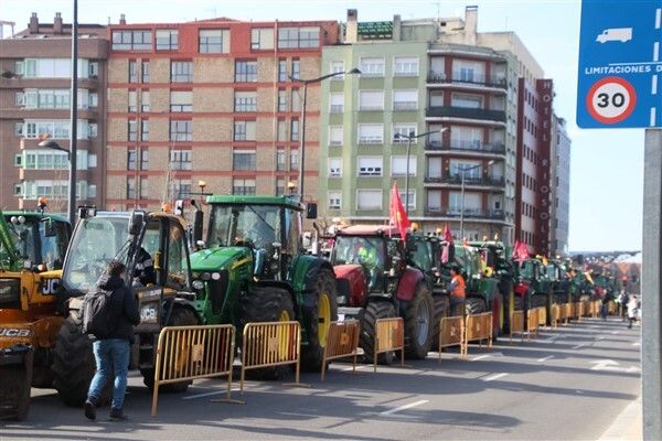 Quinta jornada de protesta y se materializa en una gran tractorada por las calles de León. La policía local contabiliza 2.100 tractores.