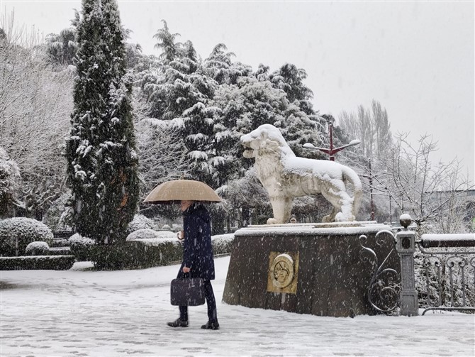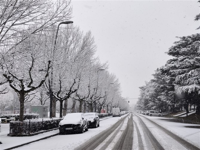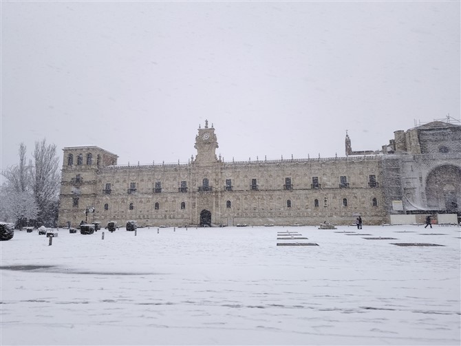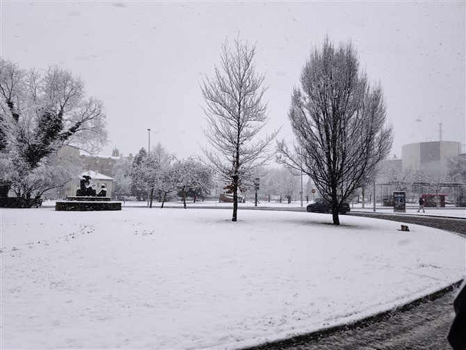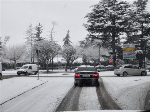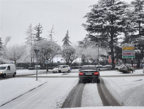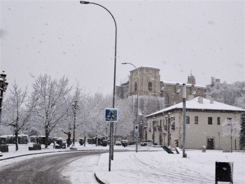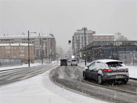 Un manto blanco ha cubierto hoy la capital leonesa provocando diversos problemas en la circulación.