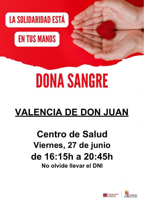 Este viernes, 23 de mayo, dona sangre en el Centro de Salud de Valencia de Don Juan y contribuye a salvar vidas. Leer más...