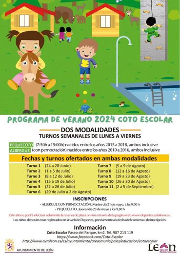 Se ofertan dos modalidades: Pequecoto para los nacidos entre 2015 y 2018 en horario diurno; y Albergue con pernocta para los nacidos entre 2010 [...] Leer más...